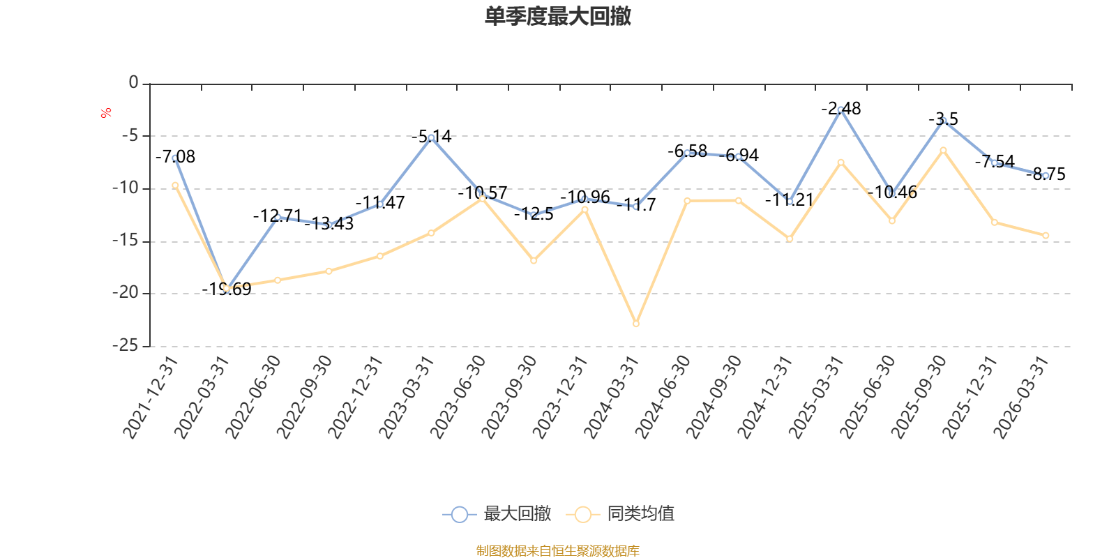 截至4月9日,基金近三年最大回撤为28.47%,同类可比基金排名4/71。单季度最大回撤出现在2022年一季度,为19.69%。