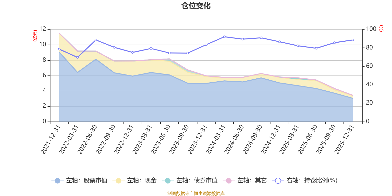 据定期报告数据统计,近三年平均股票仓位为83.86%,同类平均为87.15%。2024年一季度末基金达到92.04%的最高仓位,2022年一季度末最低,为69.69%。