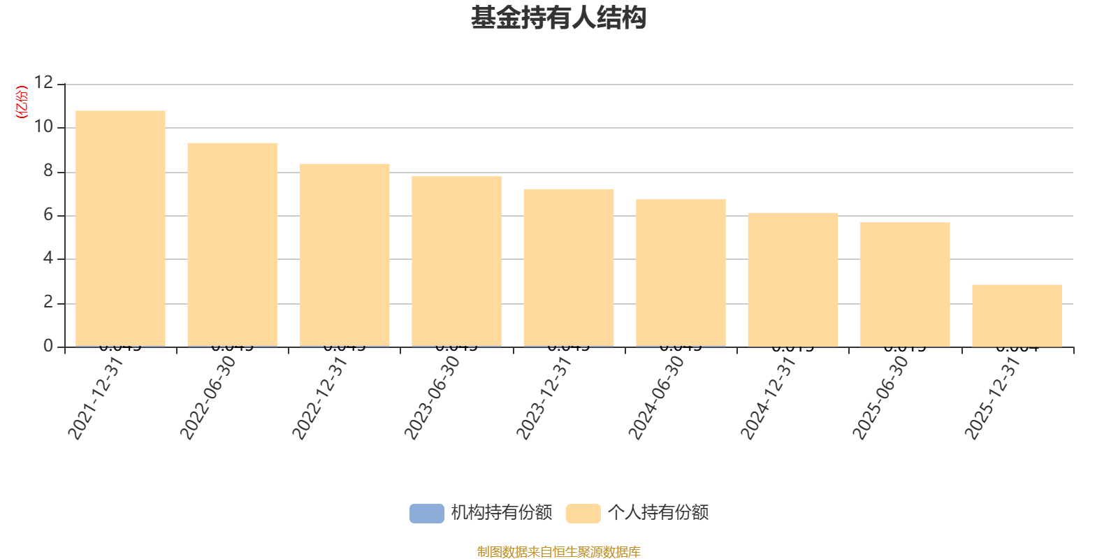 截至2025年12月31日,基金持有人共计4903户,合计持有2.84亿份。其中管理人员工持有26.54万份,占比0.09%,机构持有份额占比0.16%,个人投资者占比99.84%。