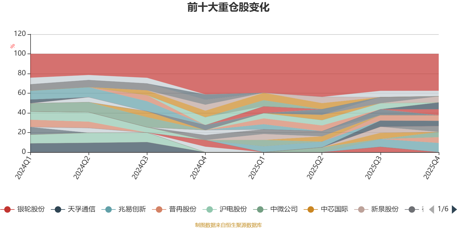 该基金持股集中度较高。截至2025年末,基金十大重仓股分别是兆易创新、天赐材料、北京君正、中矿资源、神工股份、普冉股份、寒武纪、海光信息、中微公司、芯原股份。