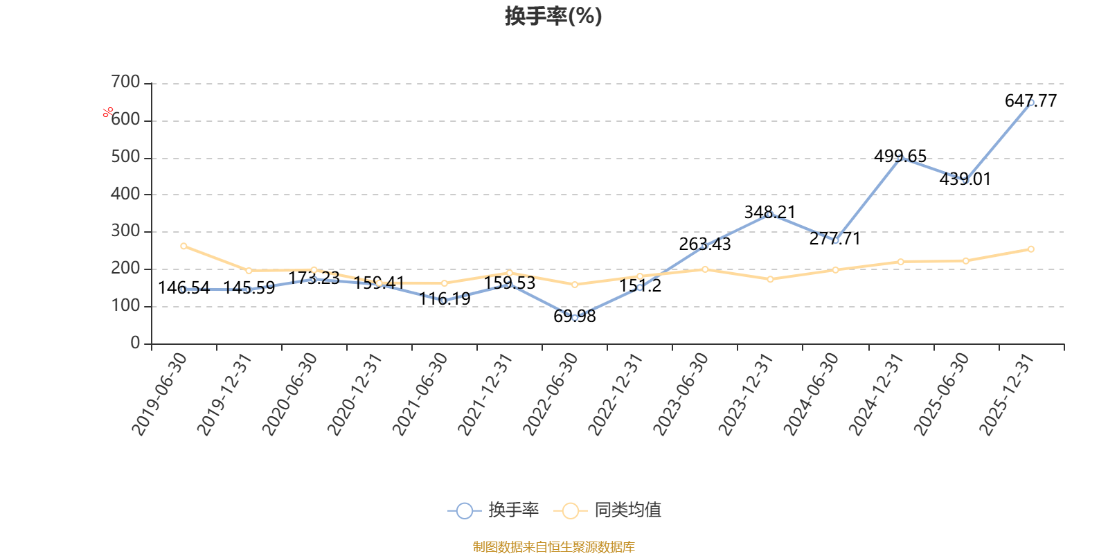 截至2025年12月31日,基金最近一年换手率约1077.29%,持续3年高于同类均值。
