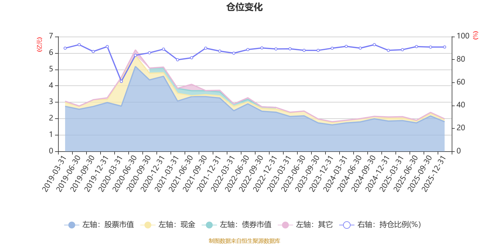 据定期报告数据统计,近三年平均股票仓位为89.96%,同类平均为85.83%。2019年上半年末基金达到92.98%的最高仓位,2020年一季度末最低,为61.02%。