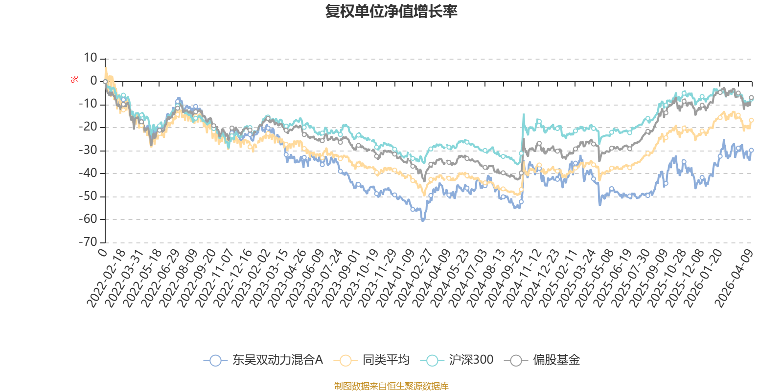 截至4月9日,东吴双动力混合A近三个月复权单位净值增长率为10.25%,位于同类可比基金38/621;近半年复权单位净值增长率为3.38%,位于同类可比基金238/621;近一年复权单位净值增长率为50.17%,位于同类可比基金202/618;近三年复权单位净值增长率为8.29%,位于同类可比基金333/559。