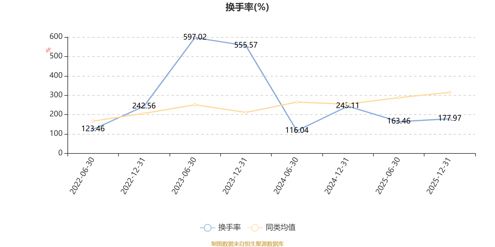 截至2025年12月31日,基金最近一年换手率约338.6%,持续2年低于同类均值。
