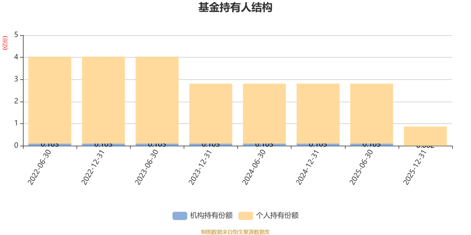 截至2025年12月31日,基金持有人共计1.19万户,合计持有8727.52万份。其中管理人员工持有15.79万份,占比0.18%,机构持有份额占比0.17%,个人投资者占比99.83%。