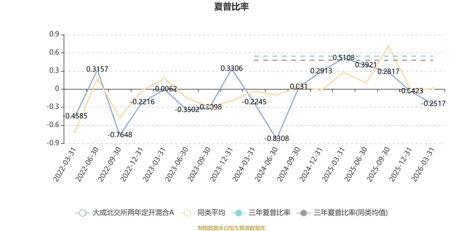 截至3月31日,基金近三年夏普比率为0.5443,位于同类可比基金244/550。