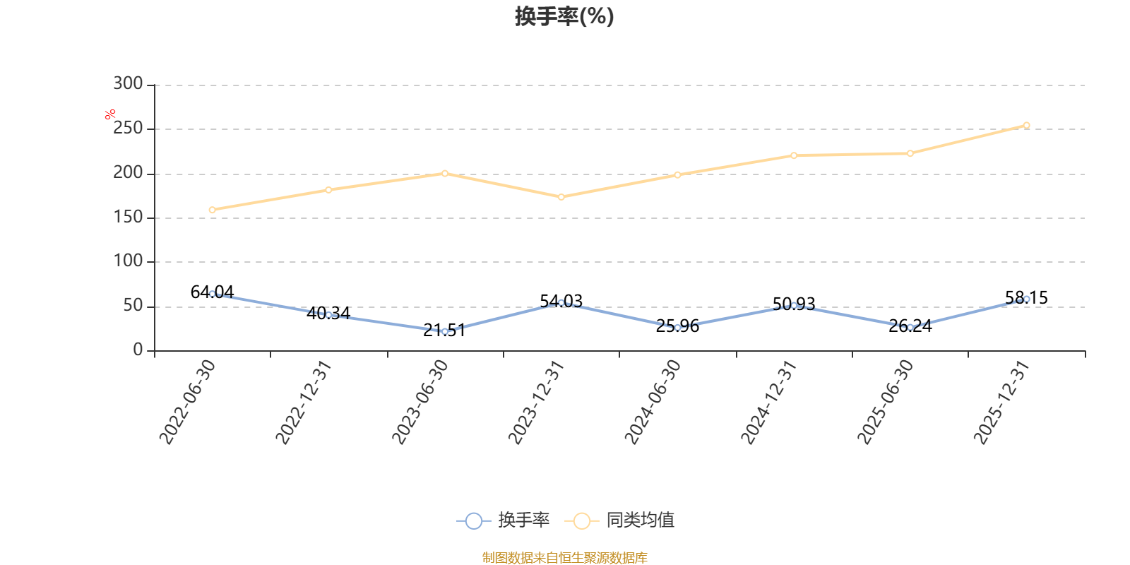 截至2025年12月31日,基金最近一年换手率约88.02%,持续低于同类均值。