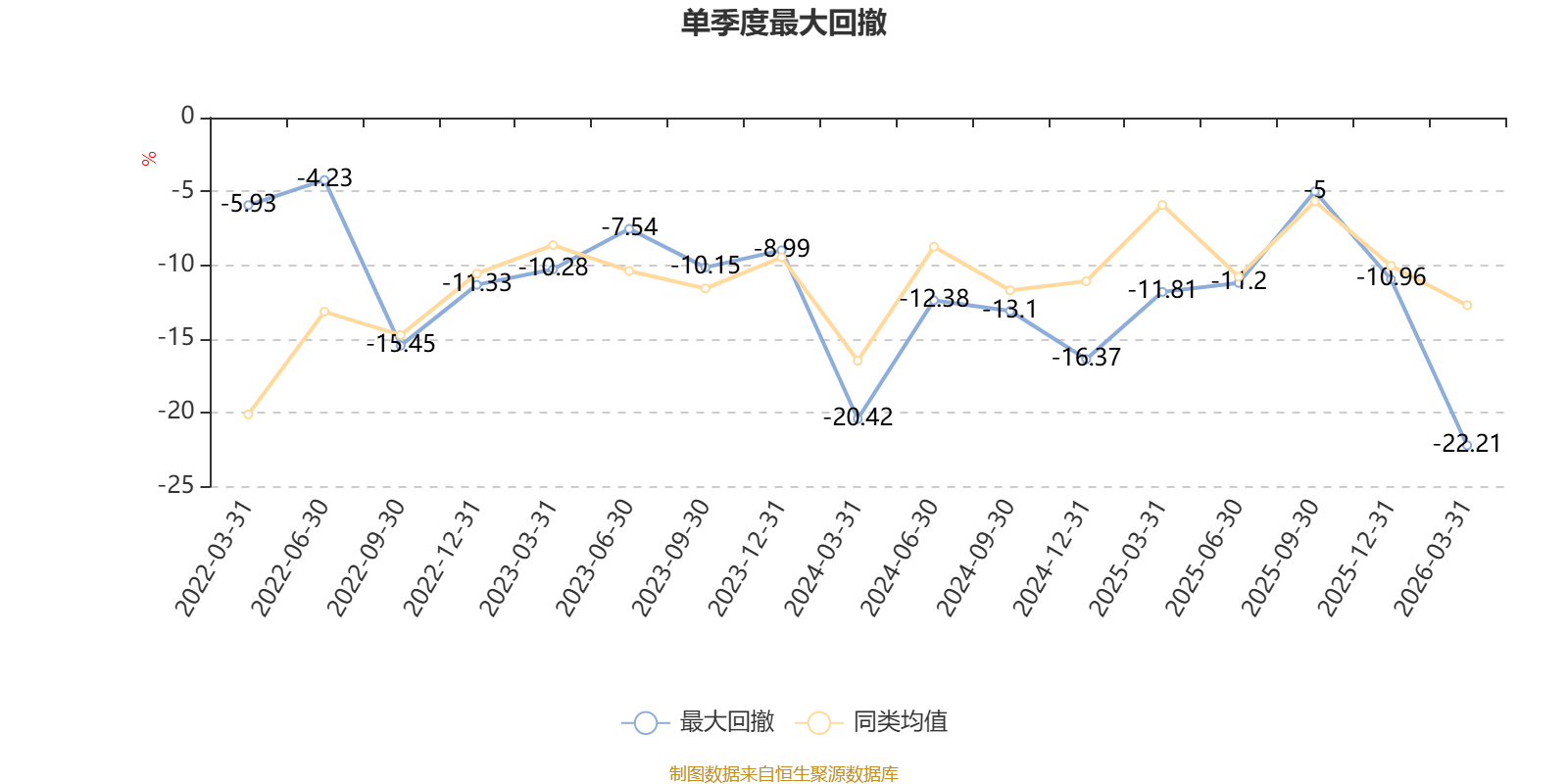 截至4月9日,基金近三年最大回撤为30.34%,同类可比基金排名207/549。单季度最大回撤出现在2026年一季度,为22.21%。