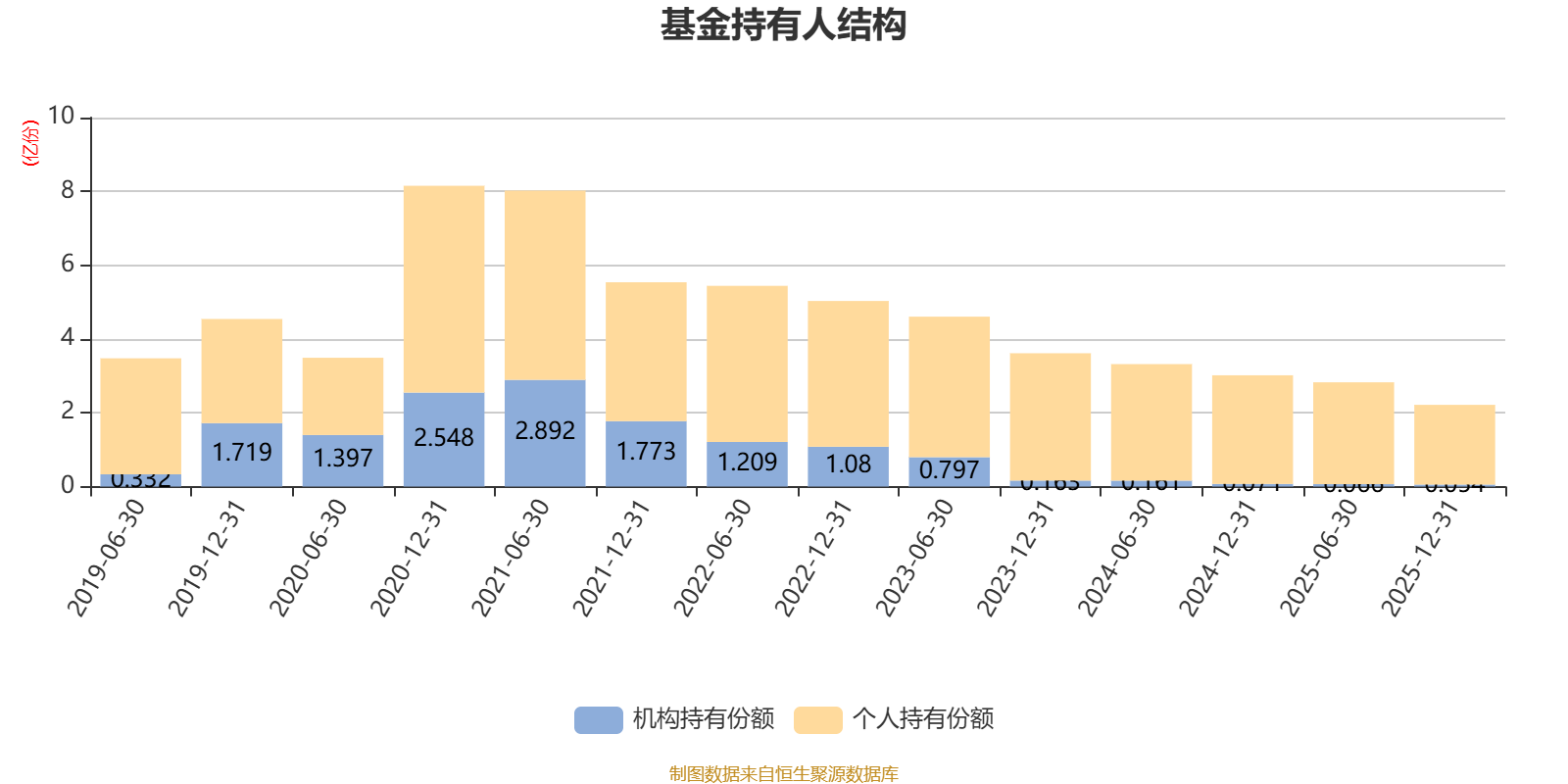 截至2025年12月31日,基金持有人共计9.44万户,合计持有2.22亿份。其中管理人员工持有21.44万份,占比0.10%,机构持有份额占比2.44%,个人投资者占比97.56%。