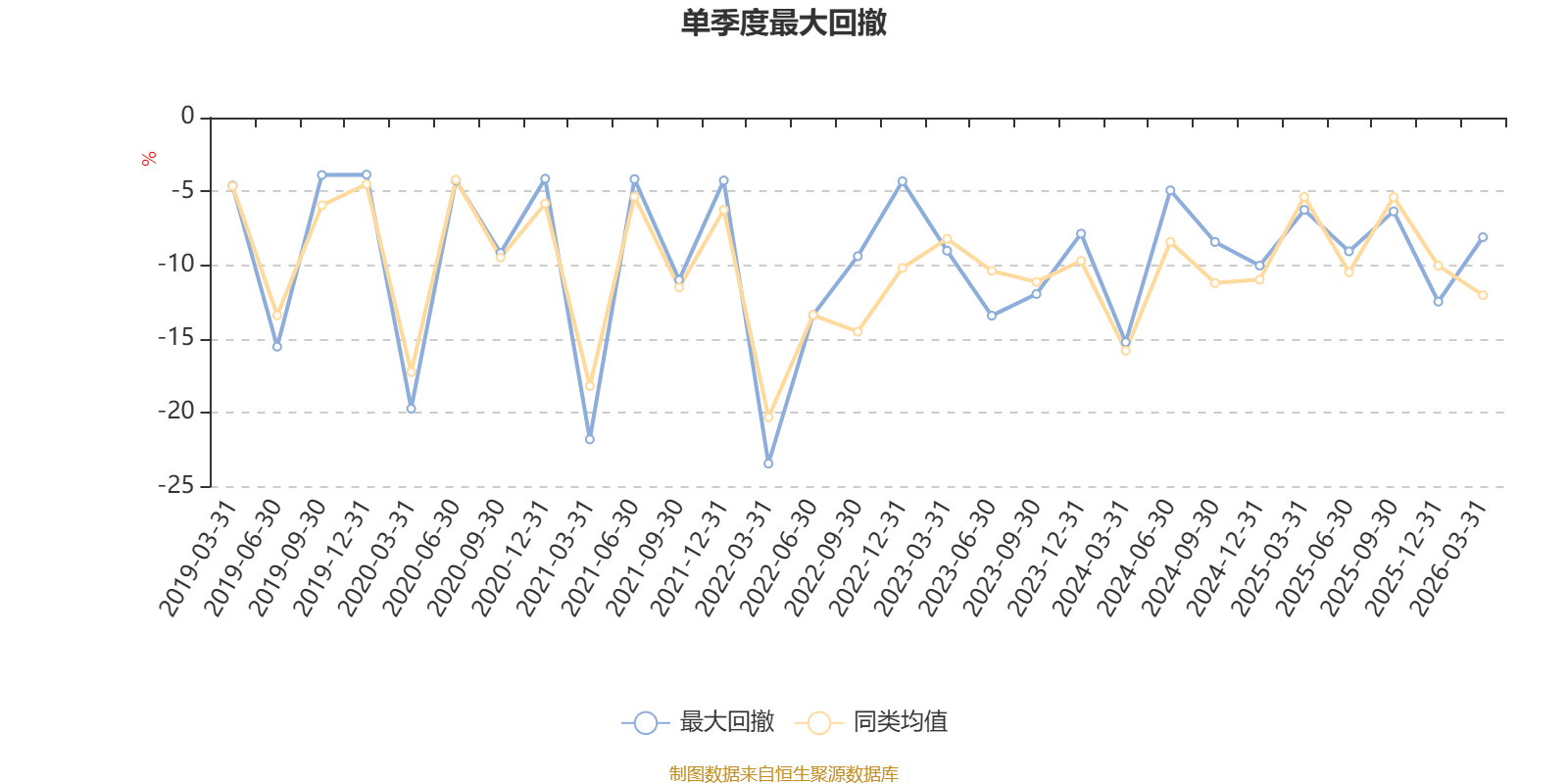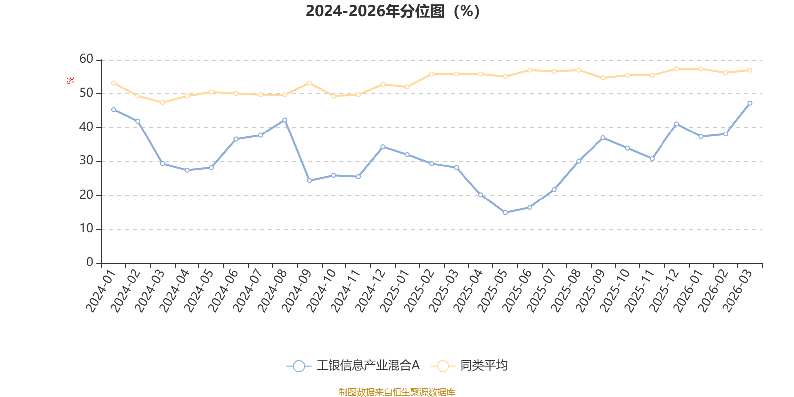 通过所选区间该基金净值增长率分位图,可以观察该基金与同类基金业绩比较情况。图为坐标原点到区间内某时点的净值增长率在同类基金中的分位数。