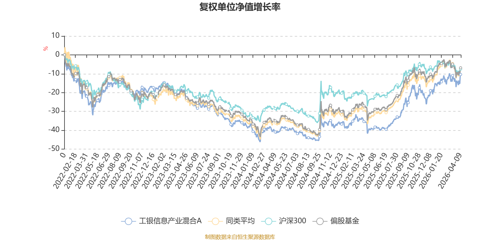 该基金属于偏股混合型基金。截至4月9日,单位净值为4.253元。基金经理是单文,目前管理的4只基金近一年均为正收益。其中,截至4月9日,工银互联网加股票近一年复权单位净值增长率最高,达51.48%;截至4月8日,工银香港中小盘人民币最低,为38.42%。