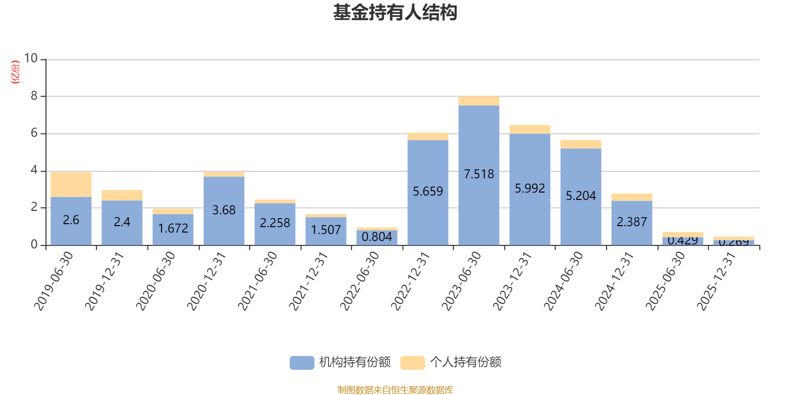 截至2025年12月31日,基金持有人共计3598户,合计持有4528.79万份。其中管理人员工持有79.73万份,占比1.76%,机构持有份额占比59.30%,个人投资者占比40.70%。