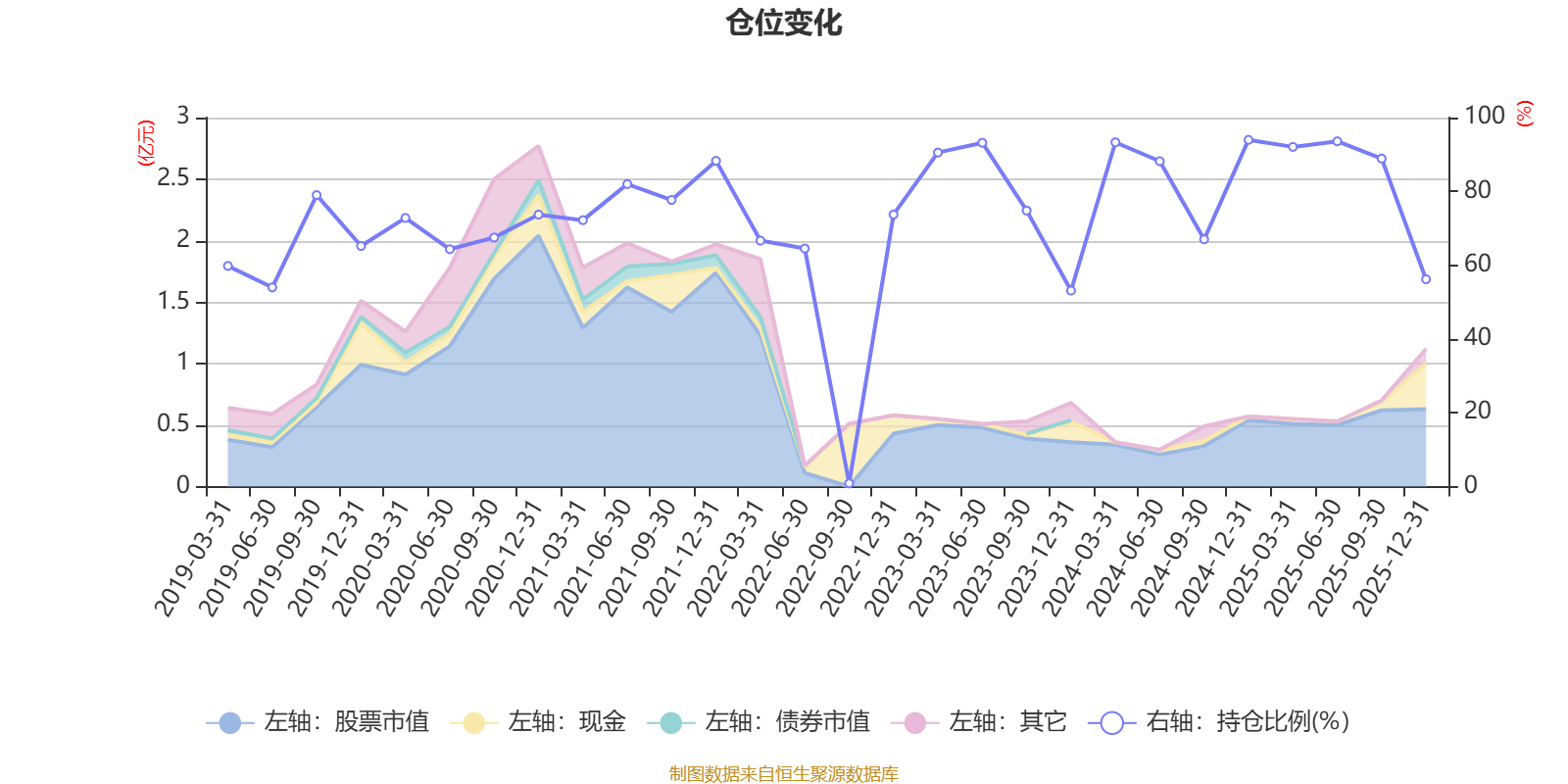 据定期报告数据统计,近三年平均股票仓位为82.07%,同类平均为72.57%。2024年末基金达到93.98%的最高仓位,2022年三季度末最低,为0.86%。