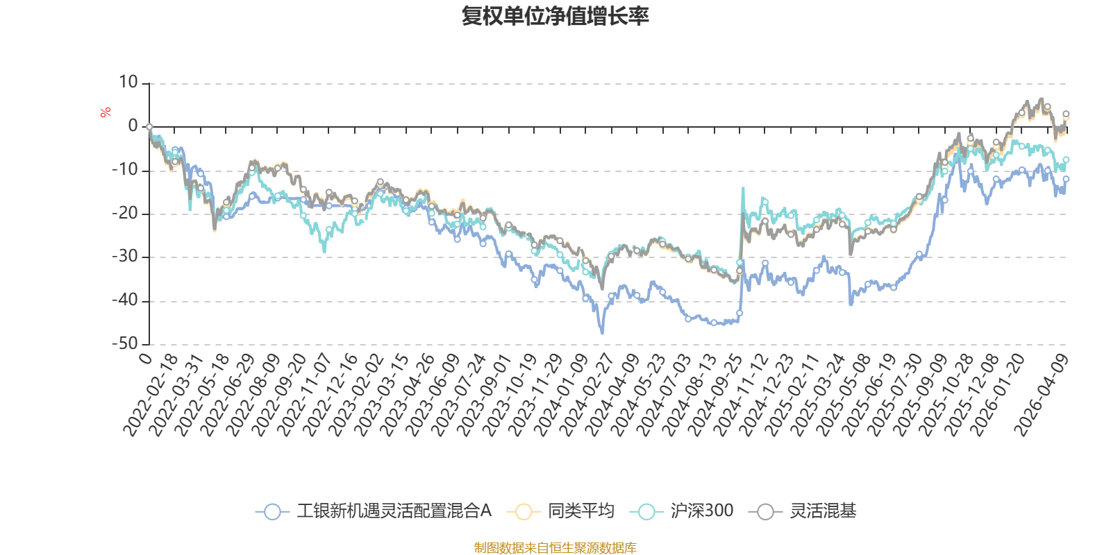 截至4月9日,工银新机遇灵活配置混合A近三个月复权单位净值增长率为-1.99%,位于同类可比基金780/1287;近半年复权单位净值增长率为-6.65%,位于同类可比基金1096/1286;近一年复权单位净值增长率为47.94%,位于同类可比基金393/1286;近三年复权单位净值增长率为6.27%,位于同类可比基金821/1286。