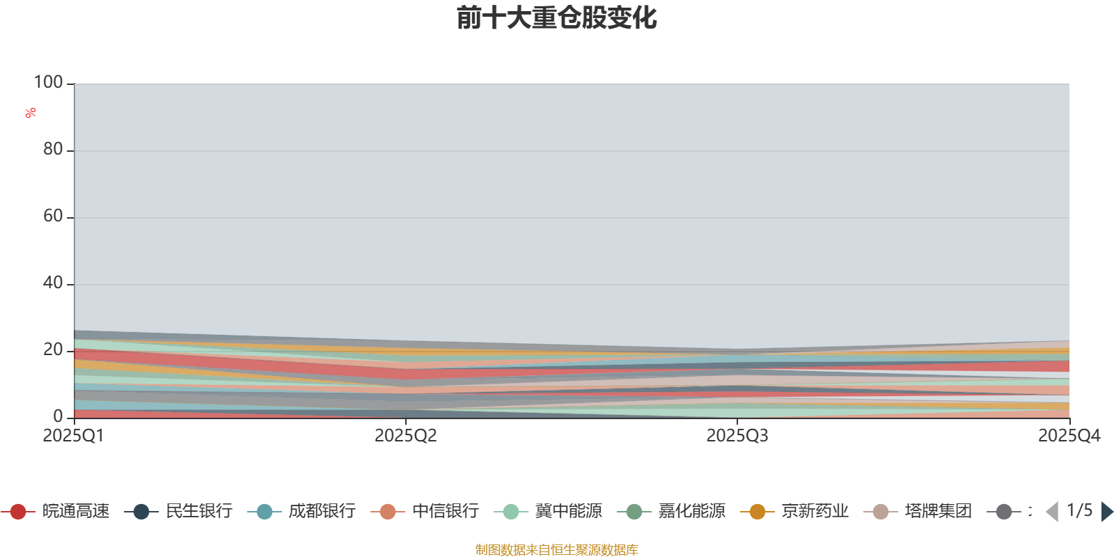 截至2025年末,基金十大重仓股分别是中远海控、农业银行、中信银行、工商银行、京新药业、中谷物流、南京银行、陕西煤业、邮储银行、华夏银行。