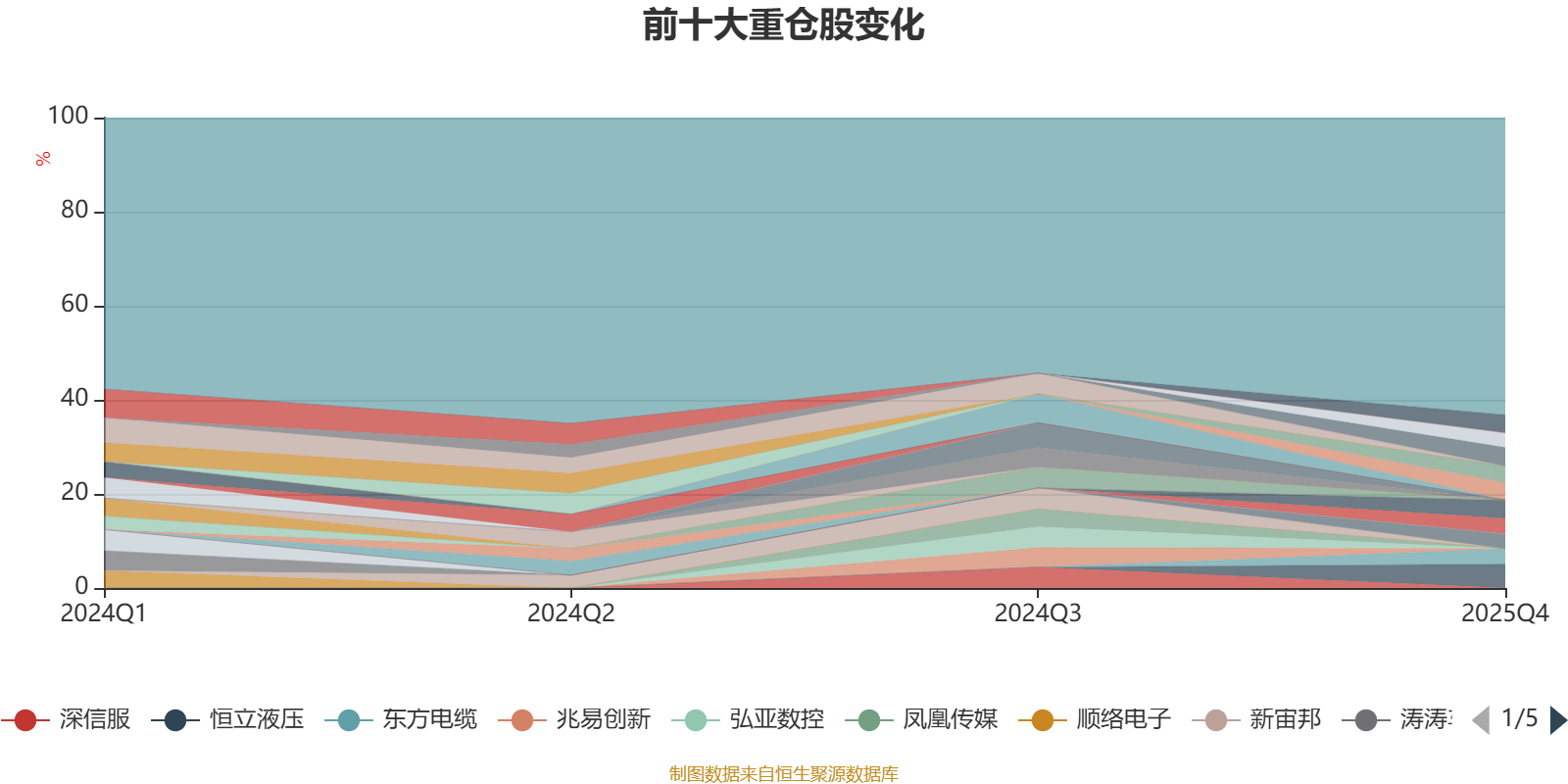 截至2025年末,基金十大重仓股分别是恒立液压、焦点科技、TCL科技、阿特斯、牧原股份、芒果超媒、东方电缆、南方航空、中国东航、鼎龙股份。