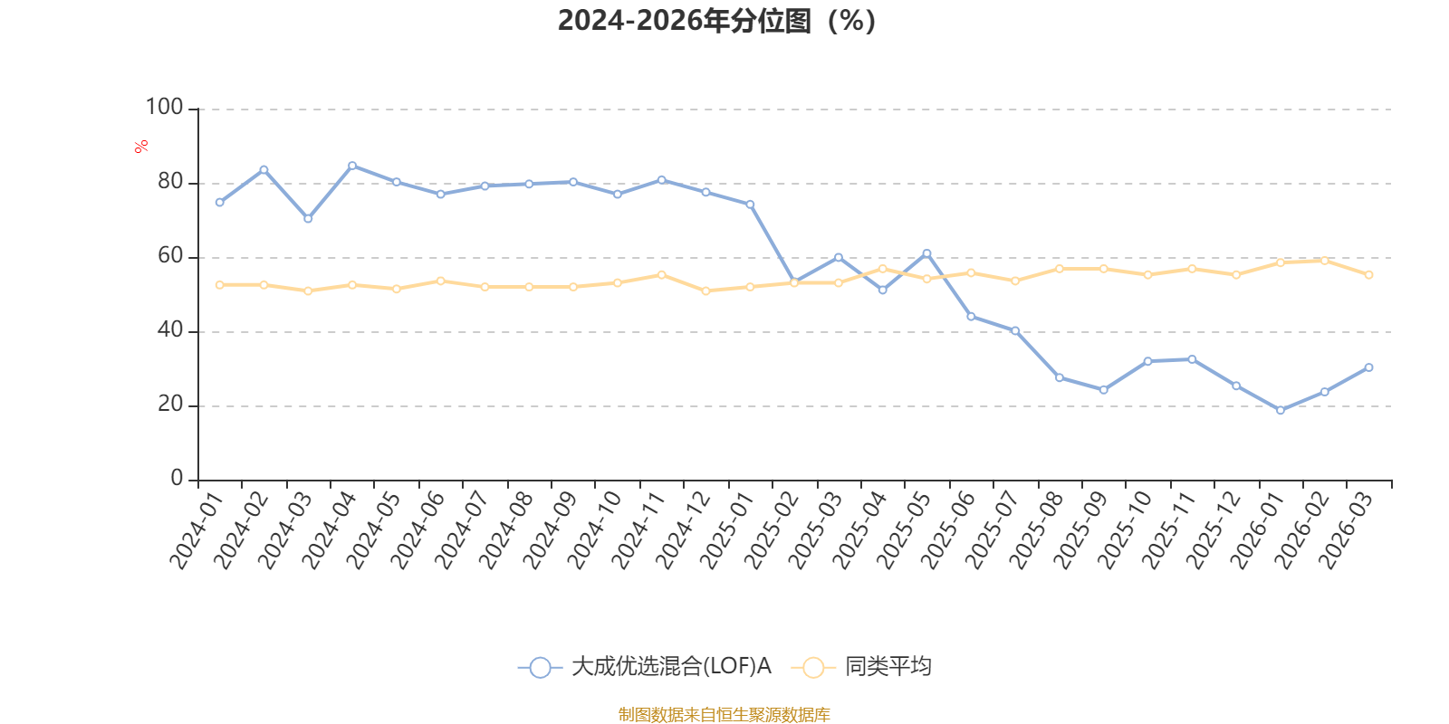 通过所选区间该基金净值增长率分位图,可以观察该基金与同类基金业绩比较情况。图为坐标原点到区间内某时点的净值增长率在同类基金中的分位数。