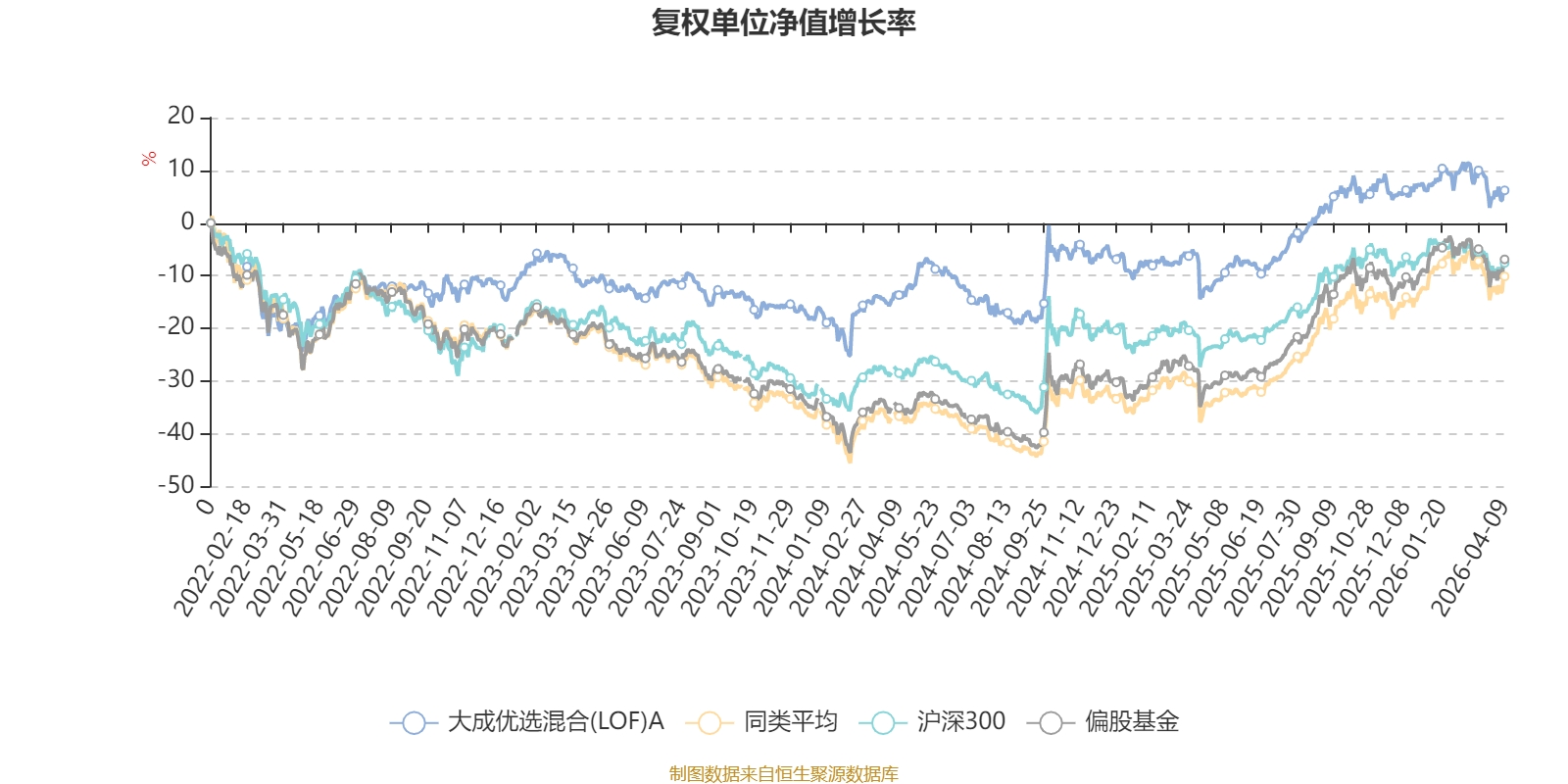 截至4月9日,大成优选混合(LOF)A近三个月复权单位净值增长率为-1.42%,位于同类可比基金75/185;近半年复权单位净值增长率为-2.56%,位于同类可比基金113/185;近一年复权单位净值增长率为23.62%,位于同类可比基金143/185;近三年复权单位净值增长率为18.40%,位于同类可比基金77/177。