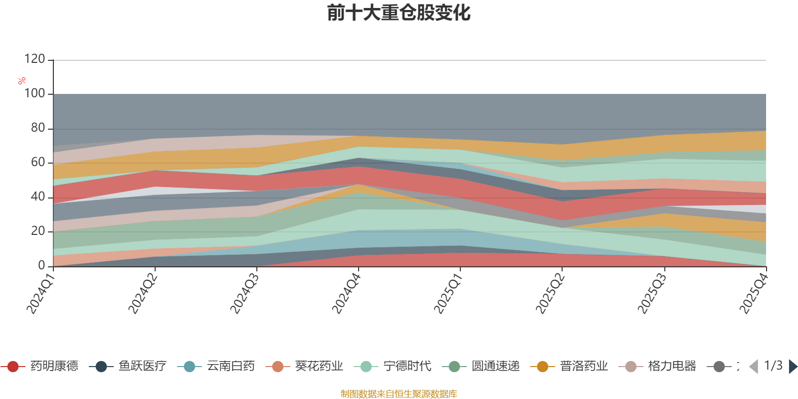 该基金持股集中度较高,近2年前十大重仓股集中度长期超过60%。截至2025年末,基金十大重仓股分别是宏发股份、海尔智家、普洛药业、圆通速递、皇马科技、宁德时代、久立特材、美的集团、九号公司、南微医学。