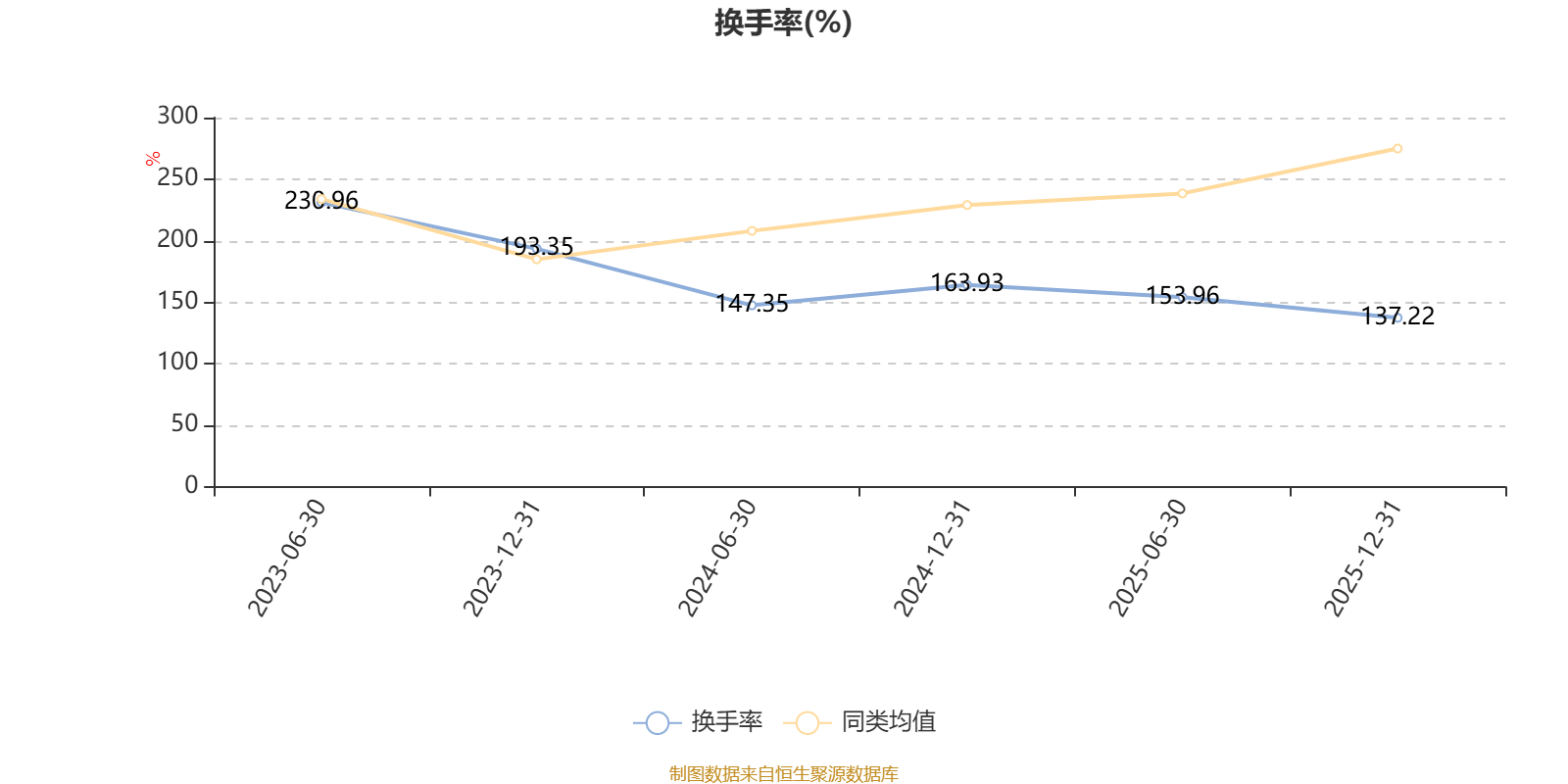 截至2025年12月31日,基金最近一年换手率约288.43%,持续2年低于同类均值。