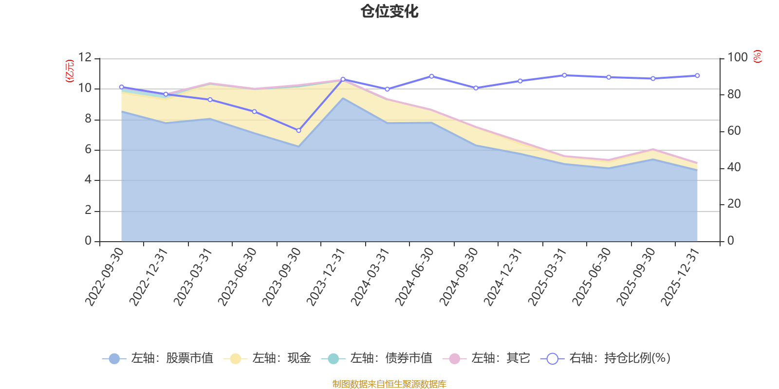 据定期报告数据统计,近三年平均股票仓位为83.54%,同类平均为86.9%。2025年一季度末基金达到90.78%的最高仓位,2023年三季度末最低,为60.62%。