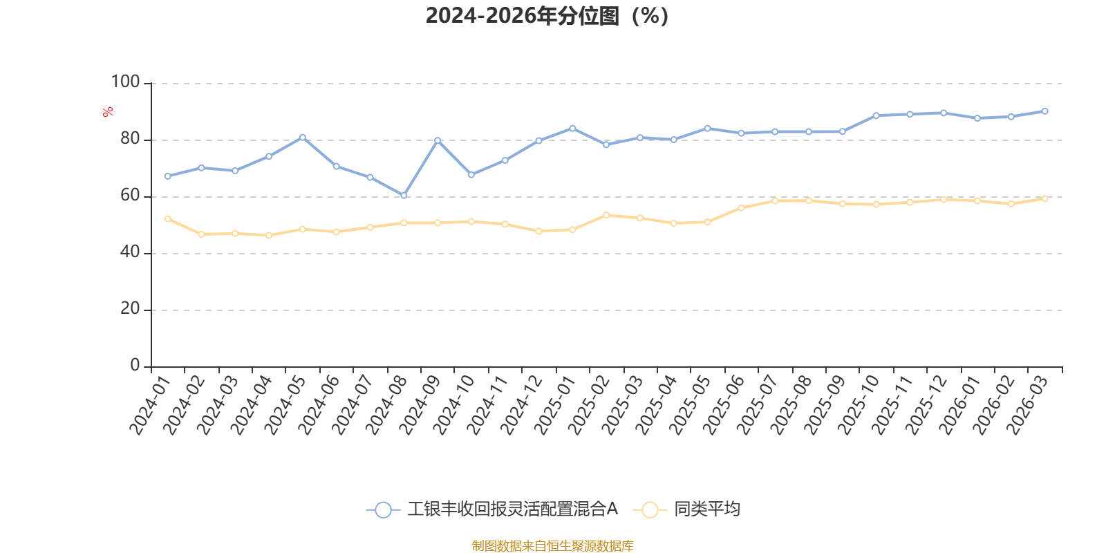 通过所选区间该基金净值增长率分位图,可以观察该基金与同类基金业绩比较情况。图为坐标原点到区间内某时点的净值增长率在同类基金中的分位数。