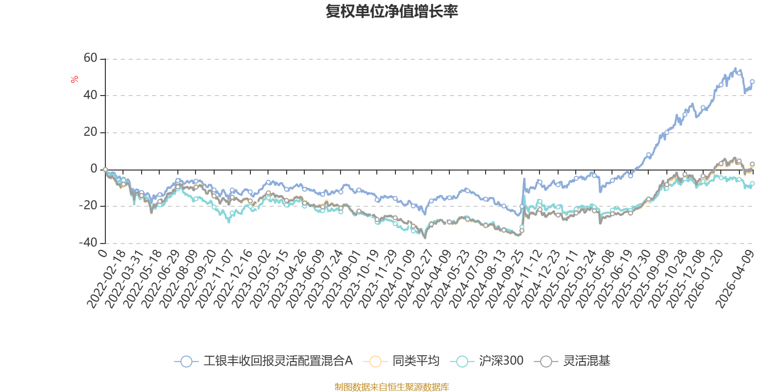 截至4月9日,工银丰收回报灵活配置混合A近三个月复权单位净值增长率为2.22%,位于同类可比基金323/1287;近半年复权单位净值增长率为13.61%,位于同类可比基金149/1286;近一年复权单位净值增长率为66.83%,位于同类可比基金209/1286;近三年复权单位净值增长率为60.63%,位于同类可比基金92/1286。