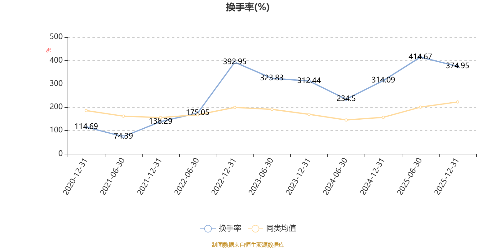 截至2025年12月31日,基金最近一年换手率约788.81%,持续4年高于同类均值。