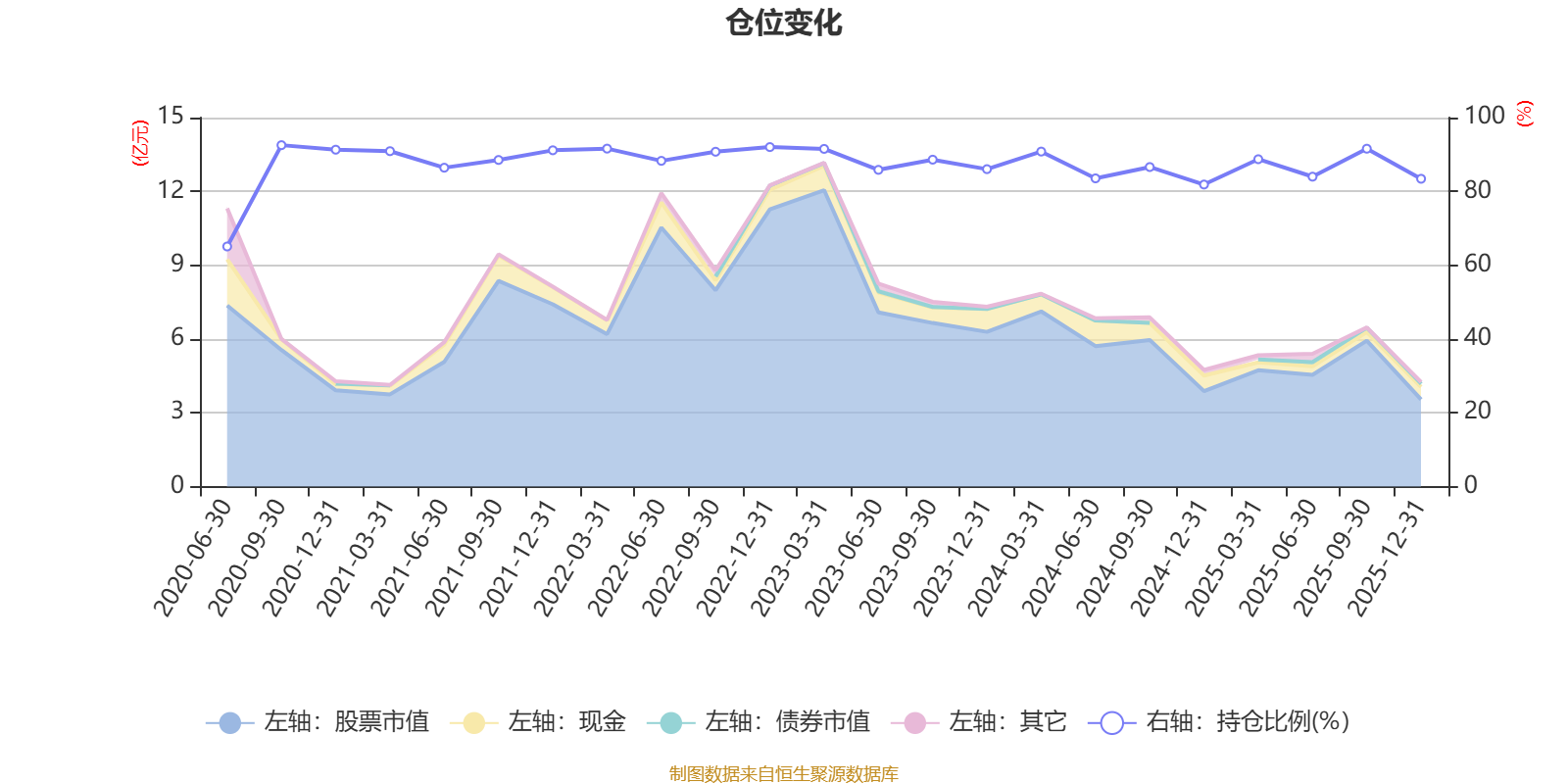 据定期报告数据统计,近三年平均股票仓位为86.87%,同类平均为86.7%。2020年三季度末基金达到92.53%的最高仓位,2020年上半年末最低,为65.07%。