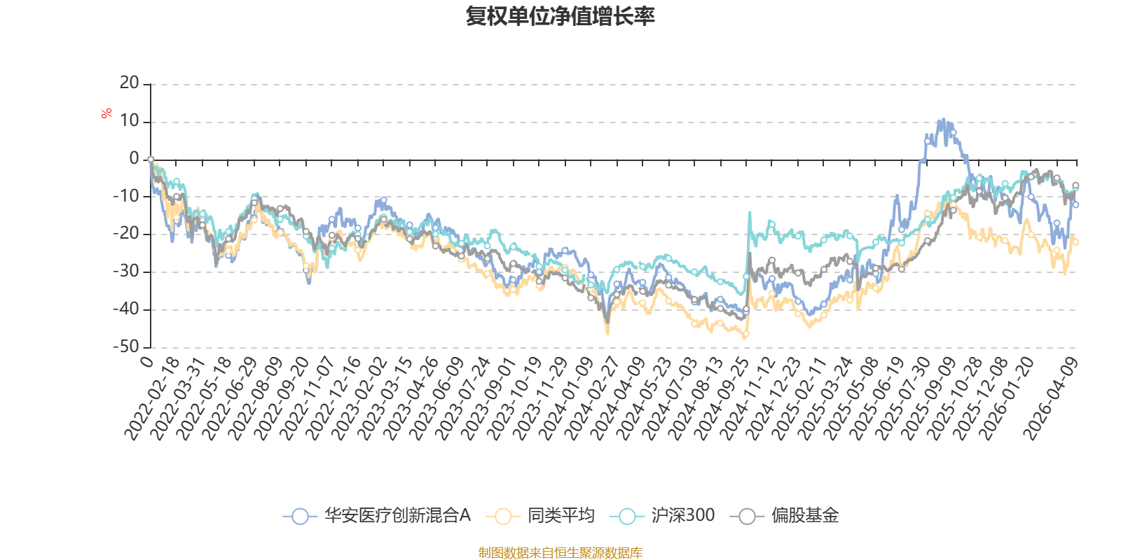 截至4月9日,华安医疗创新混合A近三个月复权单位净值增长率为-6.05%,位于同类可比基金48/106;近半年复权单位净值增长率为-11.68%,位于同类可比基金81/106;近一年复权单位净值增长率为33.29%,位于同类可比基金35/104;近三年复权单位净值增长率为5.62%,位于同类可比基金24/78。