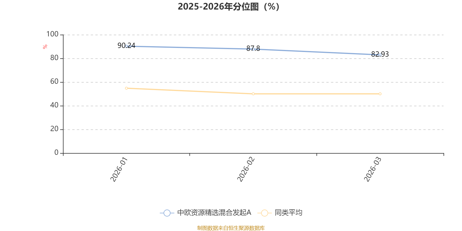 通过所选区间该基金净值增长率分位图,可以观察该基金与同类基金业绩比较情况。图为坐标原点到区间内某时点的净值增长率在同类基金中的分位数。