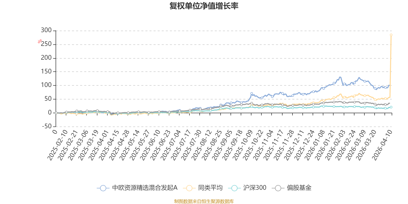 截至4月9日,中欧资源精选混合发起A近三个月复权单位净值增长率为3.50%,位于同类可比基金29/49;近半年复权单位净值增长率为16.96%,位于同类可比基金25/49;近一年复权单位净值增长率为100.80%,位于同类可比基金11/48。