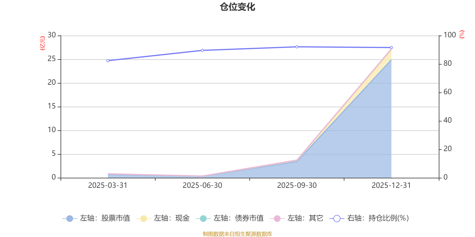 据定期报告数据统计,成立以来平均股票仓位为88.89%,同类平均为86.41%。2025年三季度末基金达到92.07%的最高仓位,2025年一季度末最低,为82.33%。