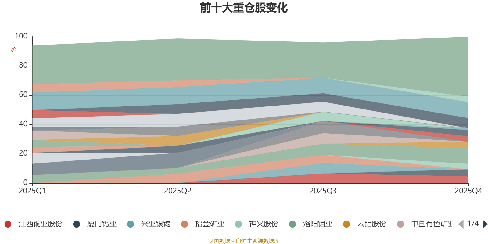 该基金持股集中度较高。截至2025年末,基金十大重仓股分别是紫金矿业、洛阳钼业、中国铝业、厦门钨业、江西铜业股份、云铝股份、赣锋锂业、中国黄金国际、藏格矿业、神火股份。