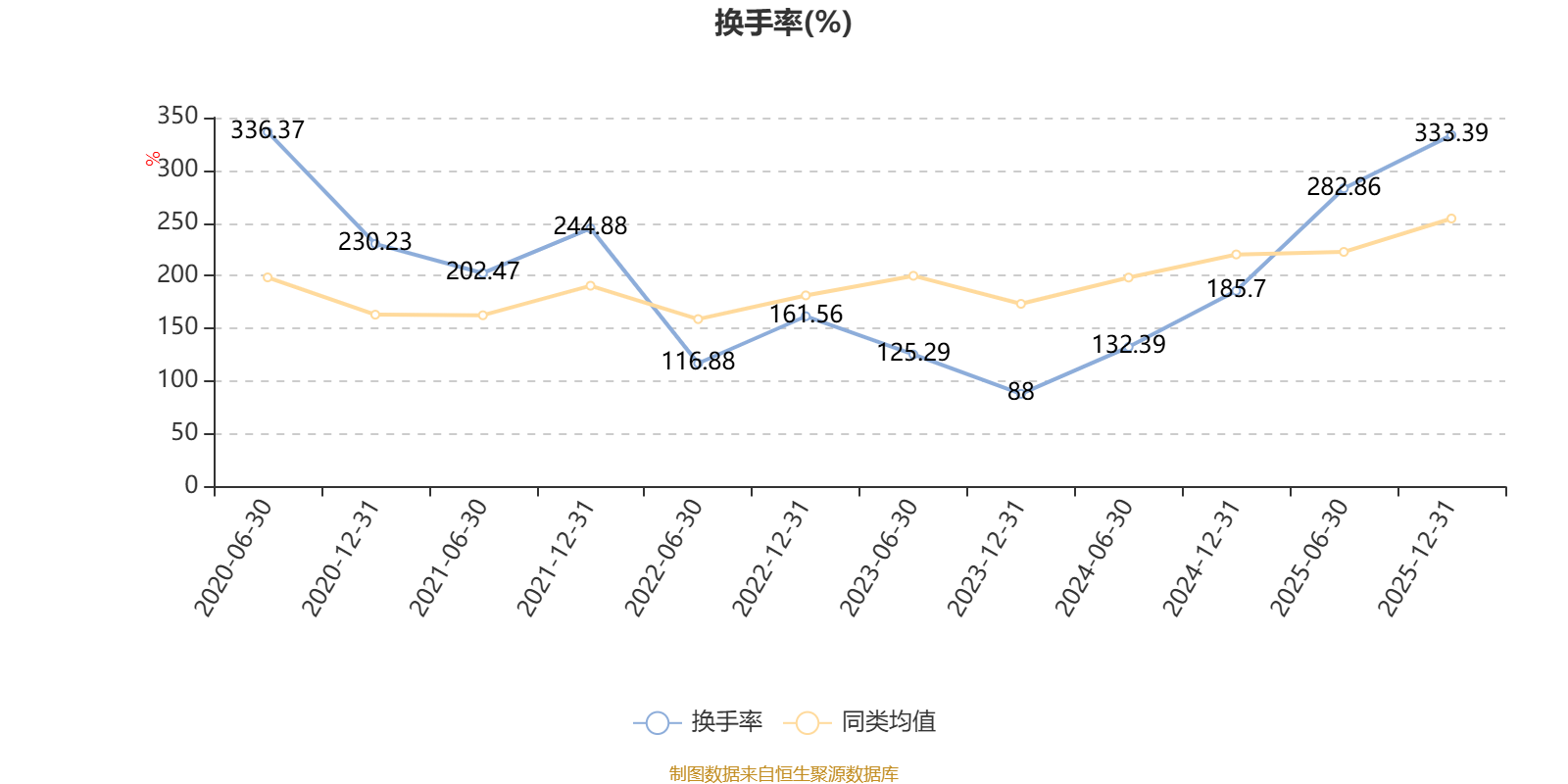截至2025年12月31日,基金最近一年换手率约615.31%,持续1年高于同类均值。
