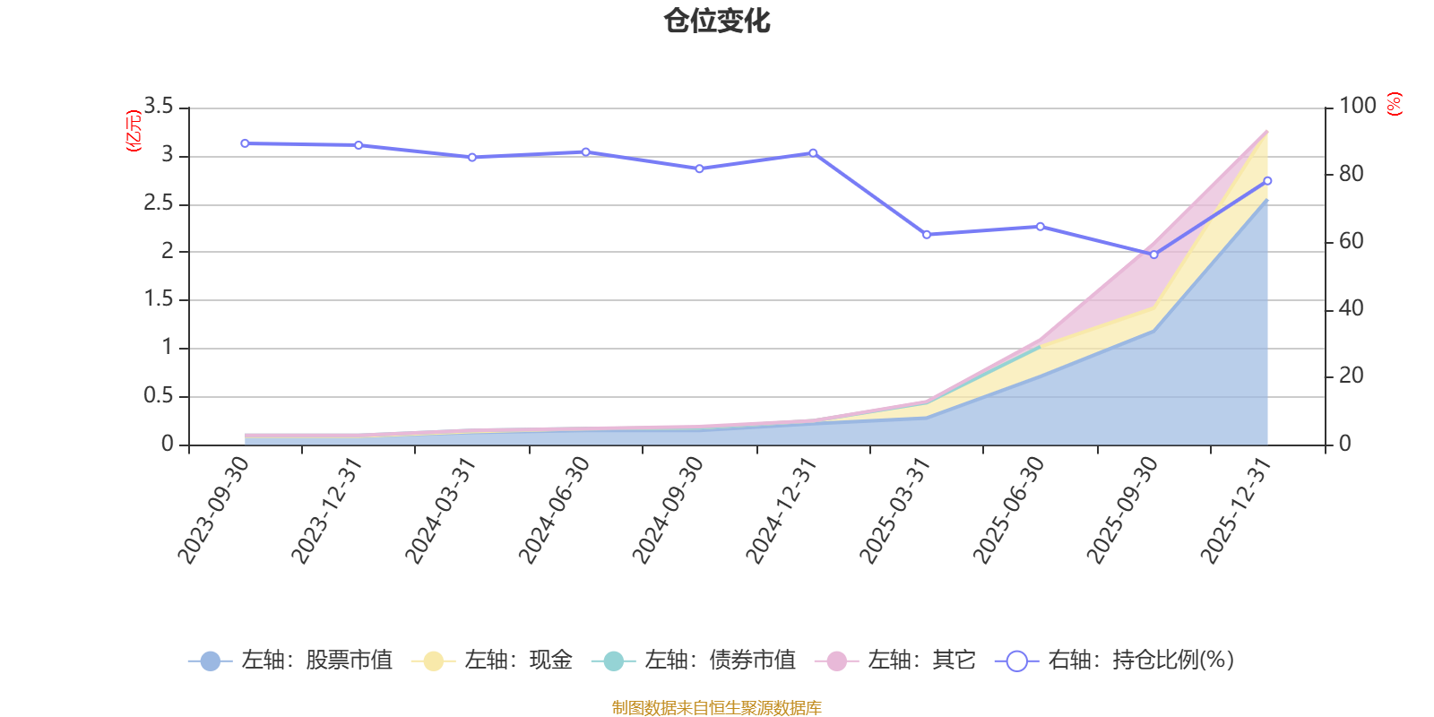 据定期报告数据统计,成立以来平均股票仓位为78.05%,同类平均为84.04%。2023年三季度末基金达到89.4%的最高仓位,2025年三季度末最低,为56.41%。
