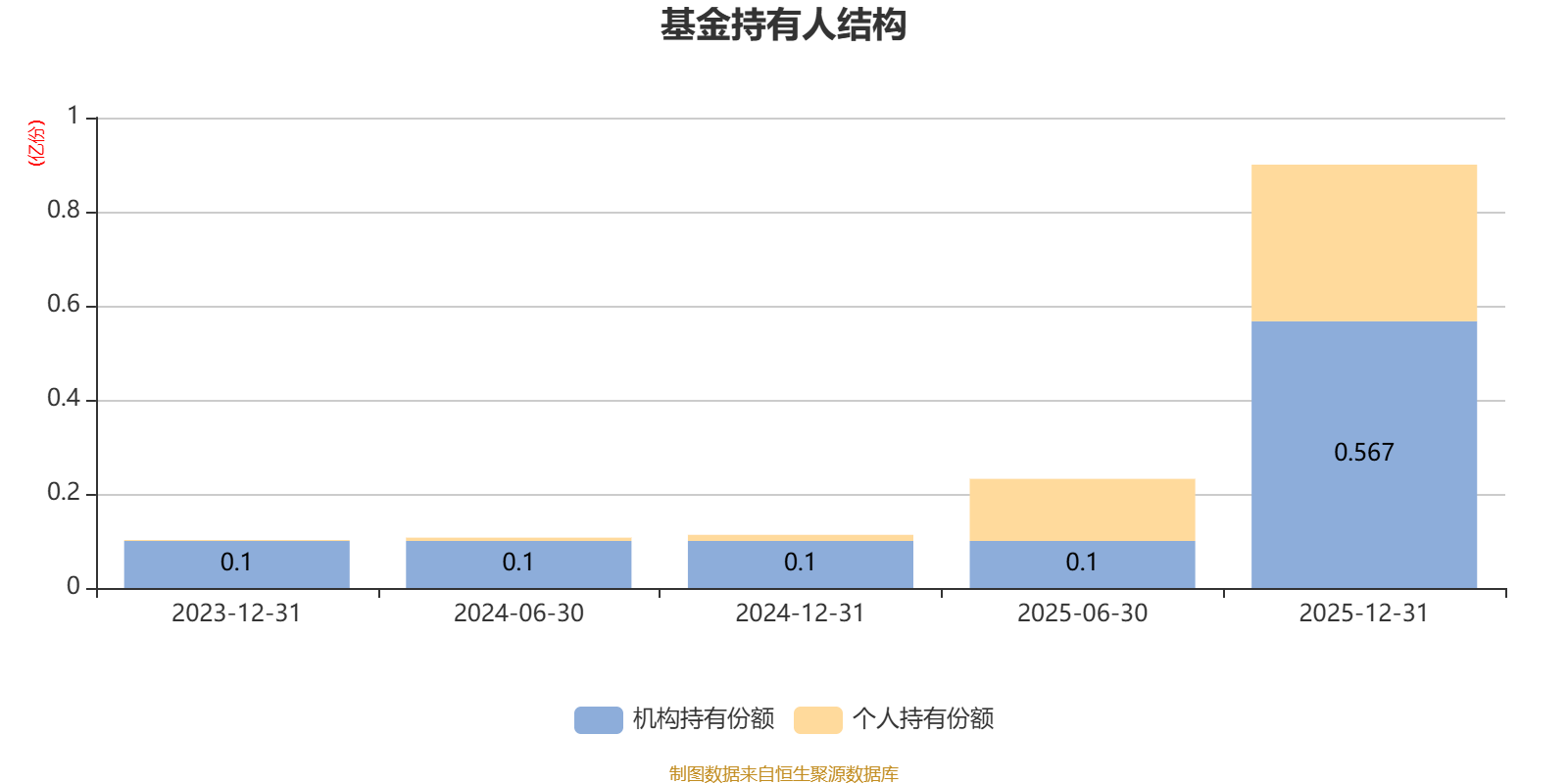 截至2025年12月31日,基金持有人共计853户,合计持有8998.38万份。其中管理人员工持有241.7万份,占比2.69%,机构持有份额占比63.02%,个人投资者占比36.98%。