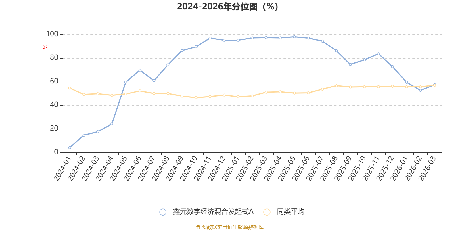 通过所选区间该基金净值增长率分位图,可以观察该基金与同类基金业绩比较情况。图为坐标原点到区间内某时点的净值增长率在同类基金中的分位数。