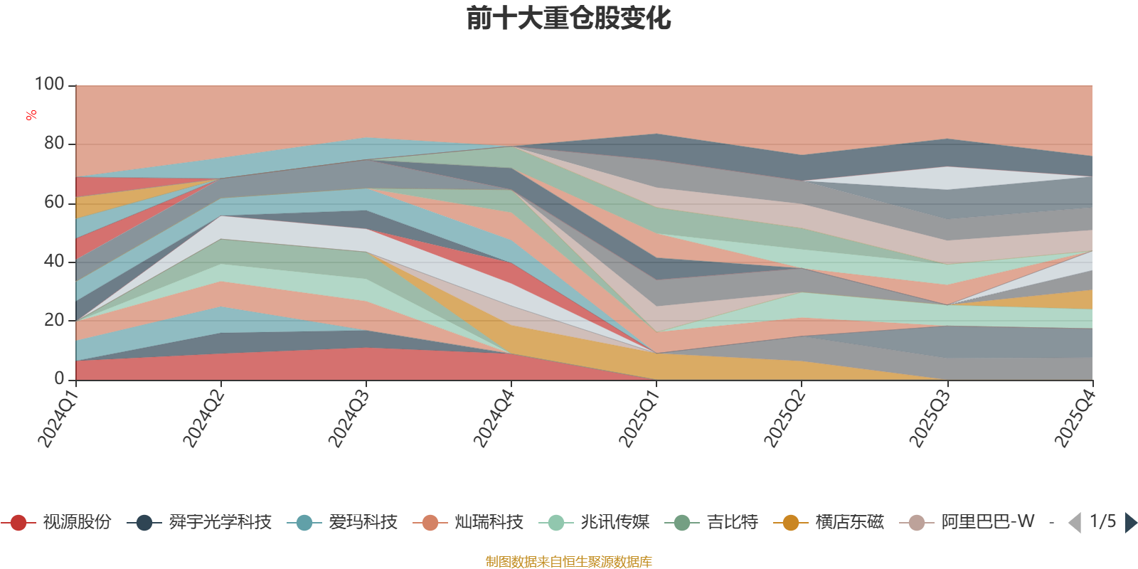 该基金持股集中度较高,近2年前十大重仓股集中度长期超过60%。截至2025年末,基金十大重仓股分别是京东方A、美团-W、中文传媒、玲珑轮胎、中集车辆、海尔智家、桃李面包、中国飞鹤、老板电器、新宝股份。
