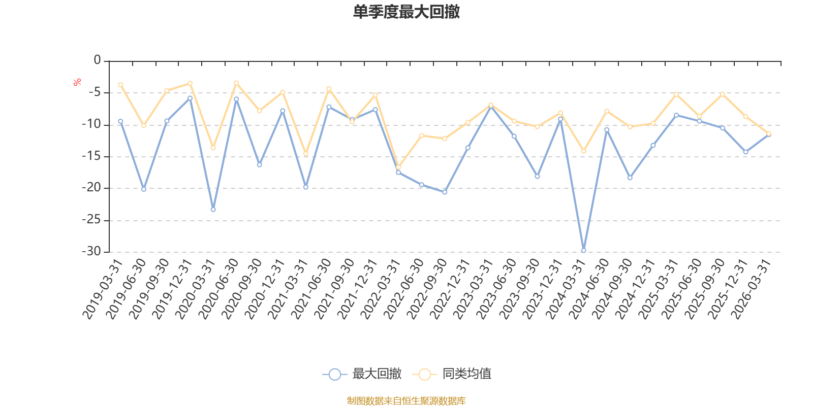 通过所选区间该基金净值增长率分位图,可以观察该基金与同类基金业绩比较情况。图为坐标原点到区间内某时点的净值增长率在同类基金中的分位数。