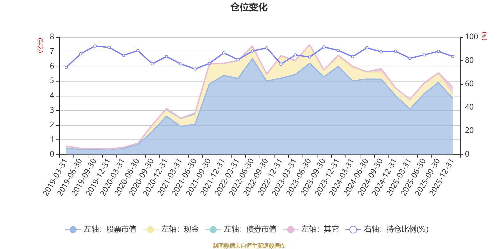 据定期报告数据统计,近三年平均股票仓位为86.51%,同类平均为72.57%。2019年三季度末基金达到92.6%的最高仓位,2021年上半年末最低,为73%。