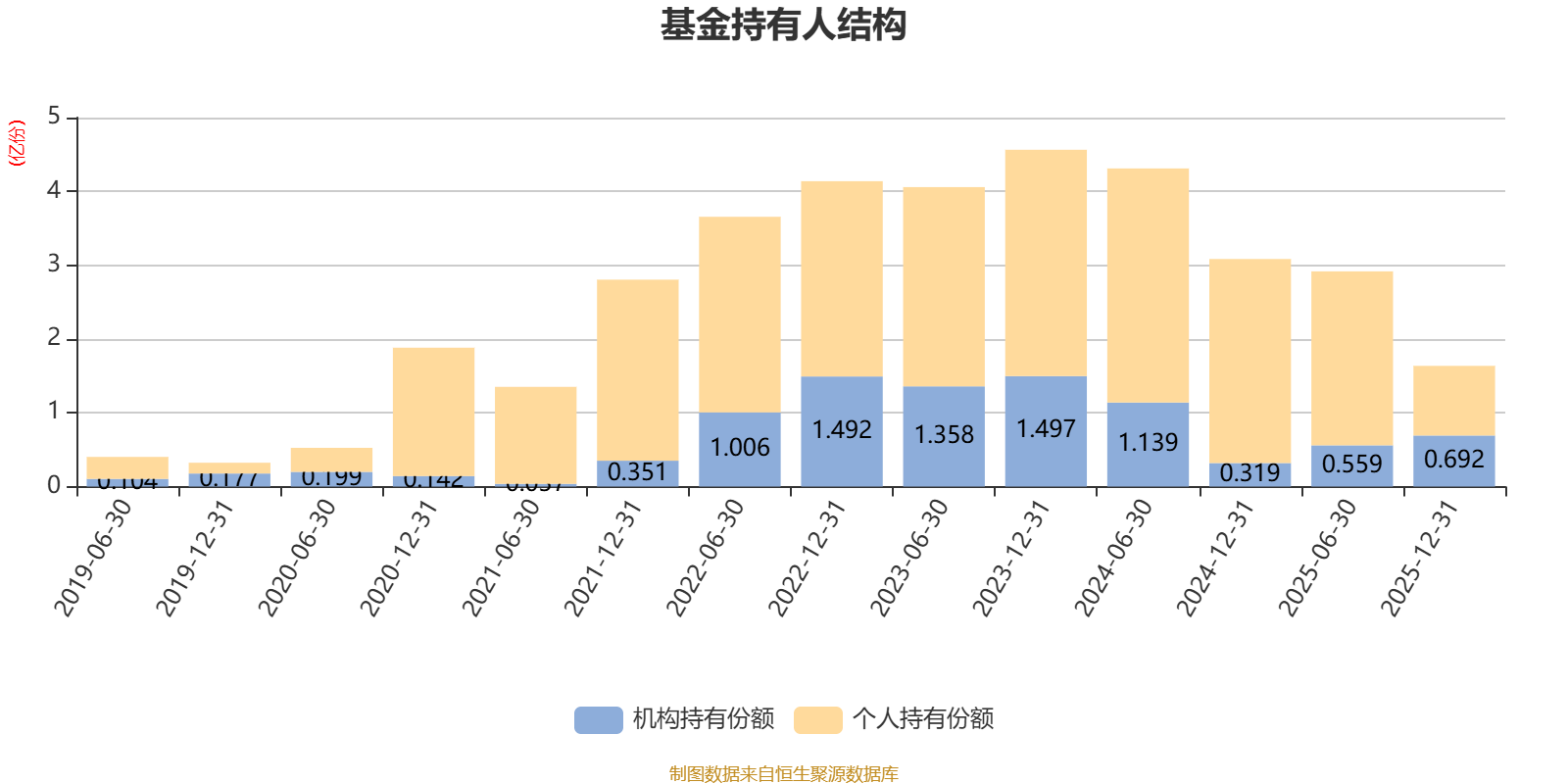 截至2025年12月31日,基金持有人共计1.27万户,合计持有1.64亿份。其中管理人员工持有6.36万份,占比0.04%,机构持有份额占比42.30%,个人投资者占比57.70%。