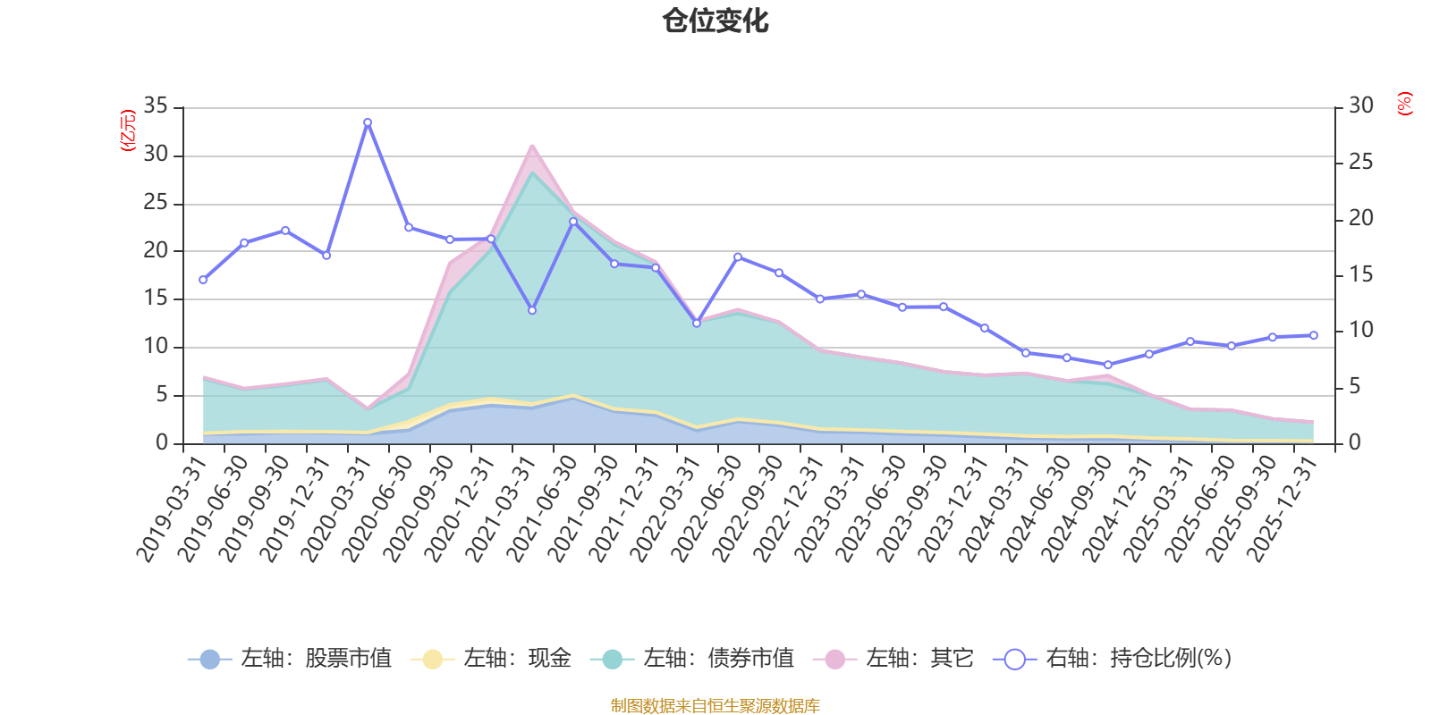 据定期报告数据统计,近三年平均股票仓位为9.66%,同类平均为72.57%。2020年一季度末基金达到28.65%的最高仓位,2024年三季度末最低,为7.04%。