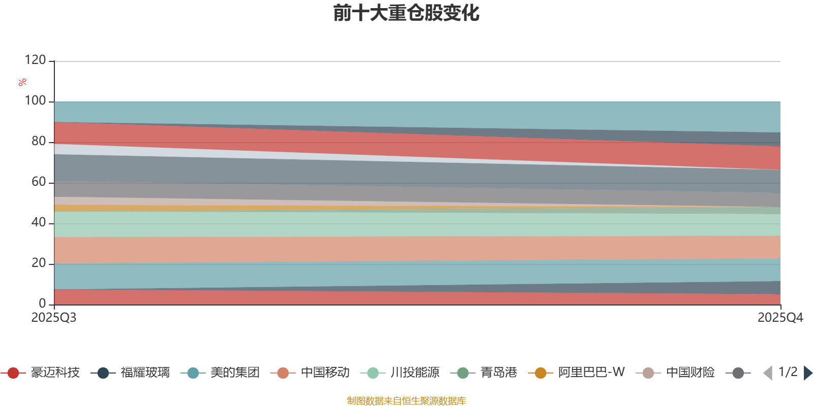 该基金持股集中度较高。截至2025年末,基金十大重仓股分别是腾讯控股、中国海洋石油、美的集团、中国移动、川投能源、海尔智家、中国黄金国际、福耀玻璃、豪迈科技、青岛港。