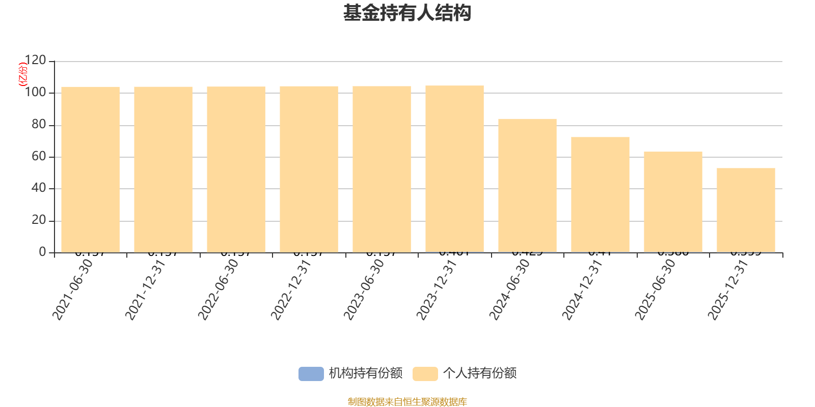 截至2025年12月31日,基金持有人共计91.17万户,合计持有52.94亿份。其中管理人员工持有95.18万份,占比0.02%,机构持有份额占比0.68%,个人投资者占比99.32%。