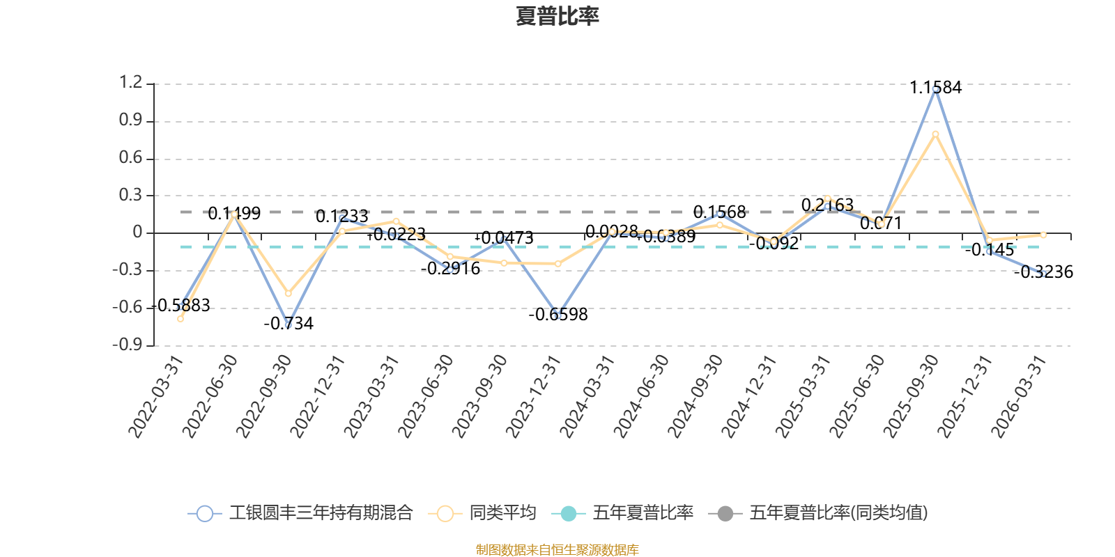 截至3月31日,基金近三年夏普比率为0.3444,位于同类可比基金95/126。
