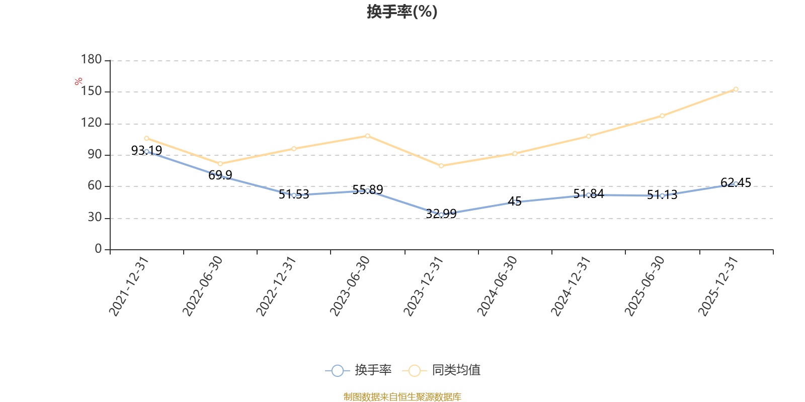 截至2025年12月31日,基金最近一年换手率约112.82%,持续低于同类均值。