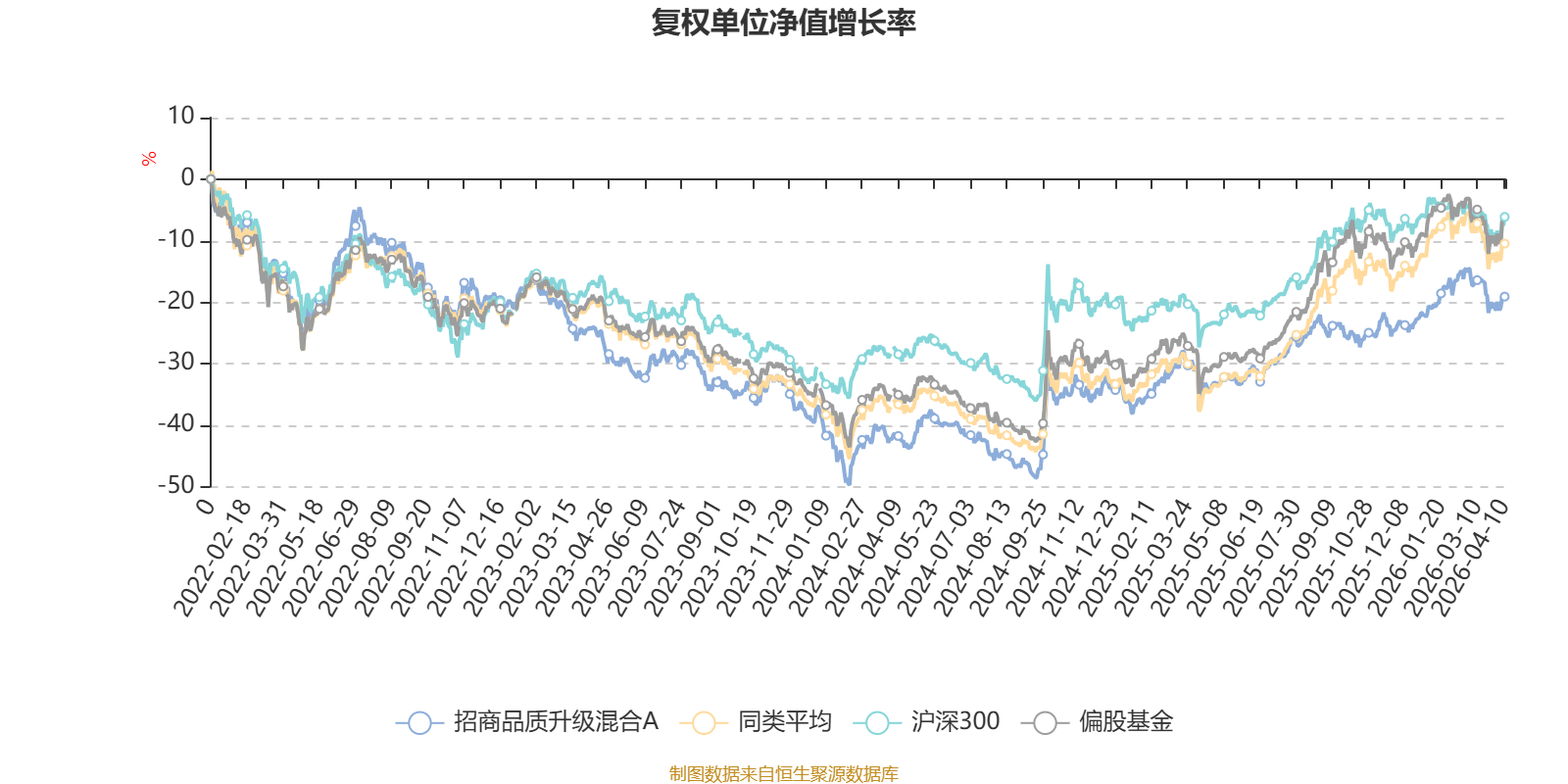 截至4月10日,招商品质升级混合A近三个月复权单位净值增长率为2.41%,位于同类可比基金51/185;近半年复权单位净值增长率为8.21%,位于同类可比基金56/185;近一年复权单位净值增长率为22.47%,位于同类可比基金143/185;近三年复权单位净值增长率为6.63%,位于同类可比基金123/177。