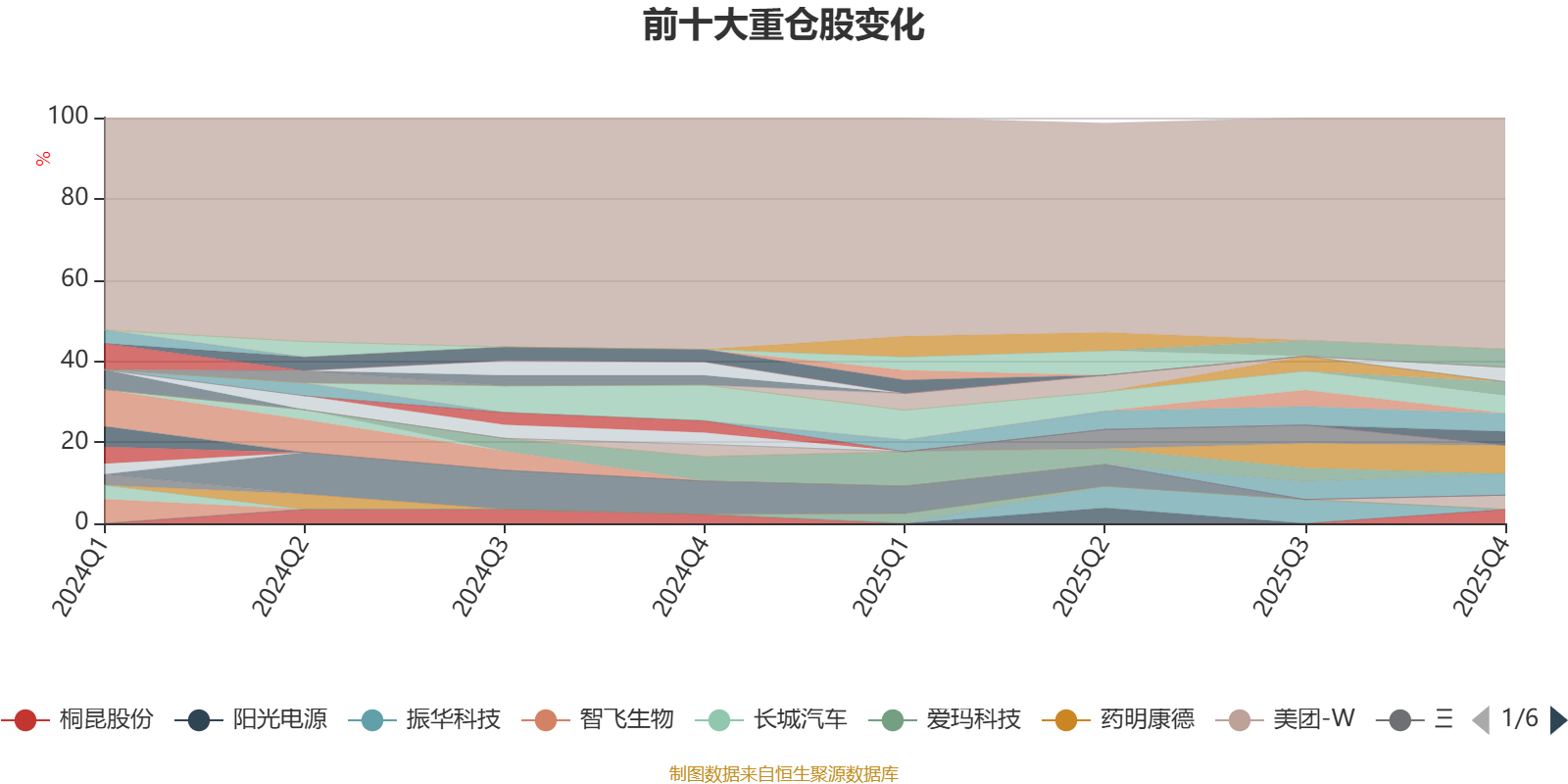 截至2025年末,基金十大重仓股分别是建滔集团、圆通速递、希慎兴业、中粮家佳康、李宁、贵州茅台、美团-W、中国海洋石油、桐昆股份、洽洽食品。