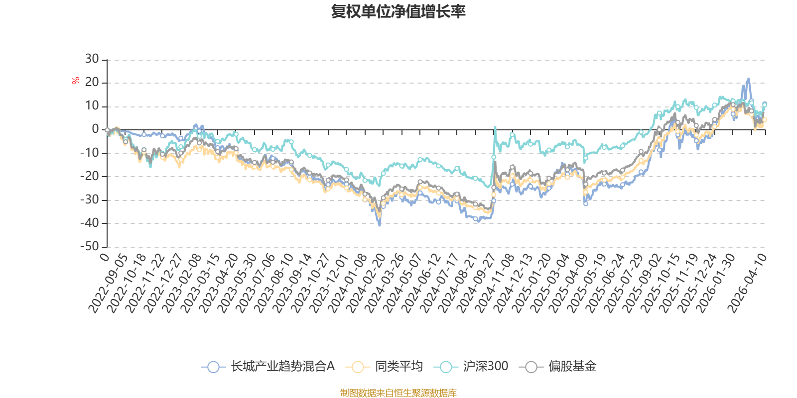 截至4月10日,长城产业趋势混合A近三个月复权单位净值增长率为3.55%,位于同类可比基金75/265;近半年复权单位净值增长率为8.88%,位于同类可比基金78/265;近一年复权单位净值增长率为57.41%,位于同类可比基金61/265;近三年复权单位净值增长率为20.03%,位于同类可比基金131/261。